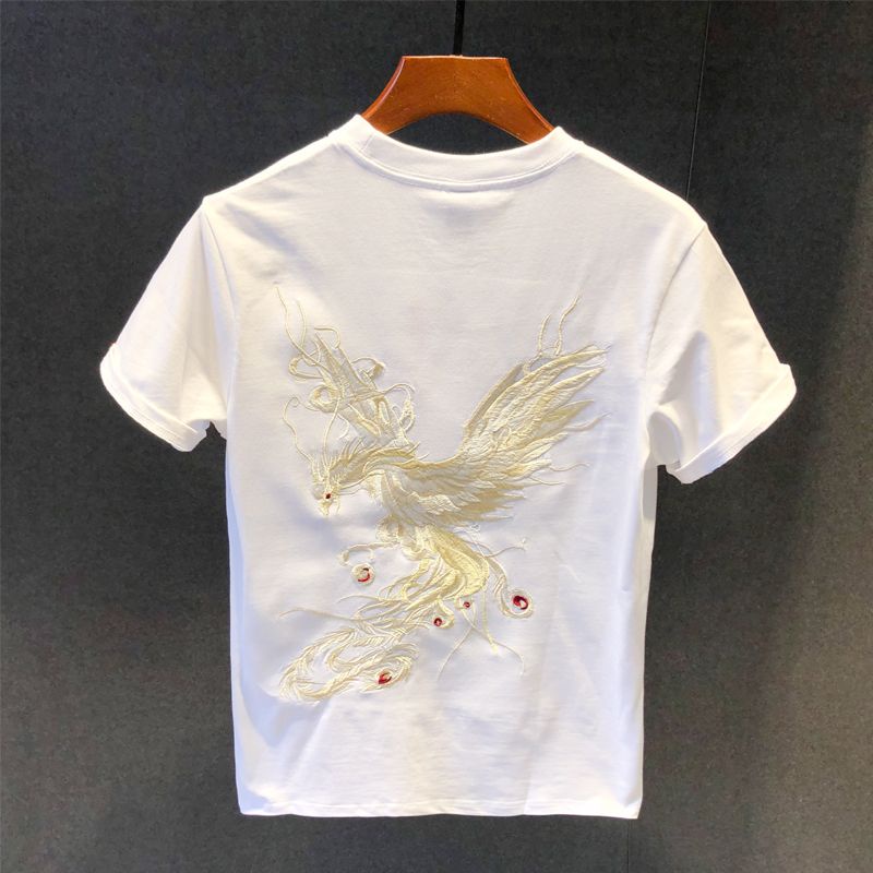 S-4XL Áo thun tay ngắn thêu phượng hoàng thời trang mới phong cách Hàn Quốc thời trang instagram thời trang nam dễ phối đồ giản dị