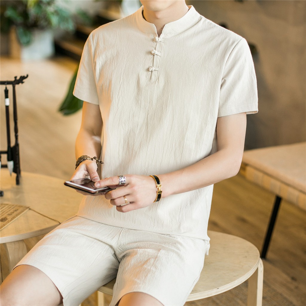 ] sale giá cực sốc tri ân khách hàng. ĐŨI TỰ NHIÊN Bộ ngắn đũi nam cổ cúc vải cài, chuẩn phom dáng...