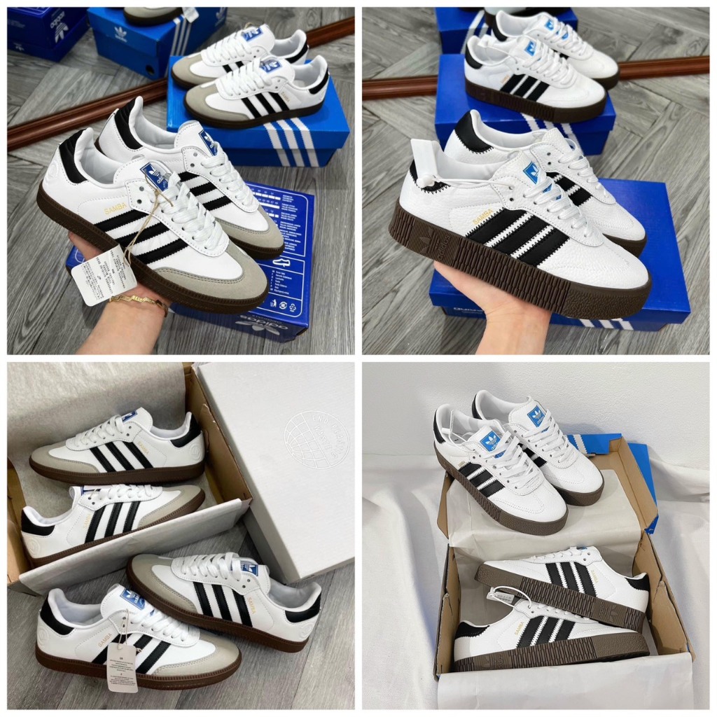 Giày thể thao adidas Samba đế nâu cao_Giày sneaker Das 3 sọc đen trắng cổ điển phối đồ nam nữ