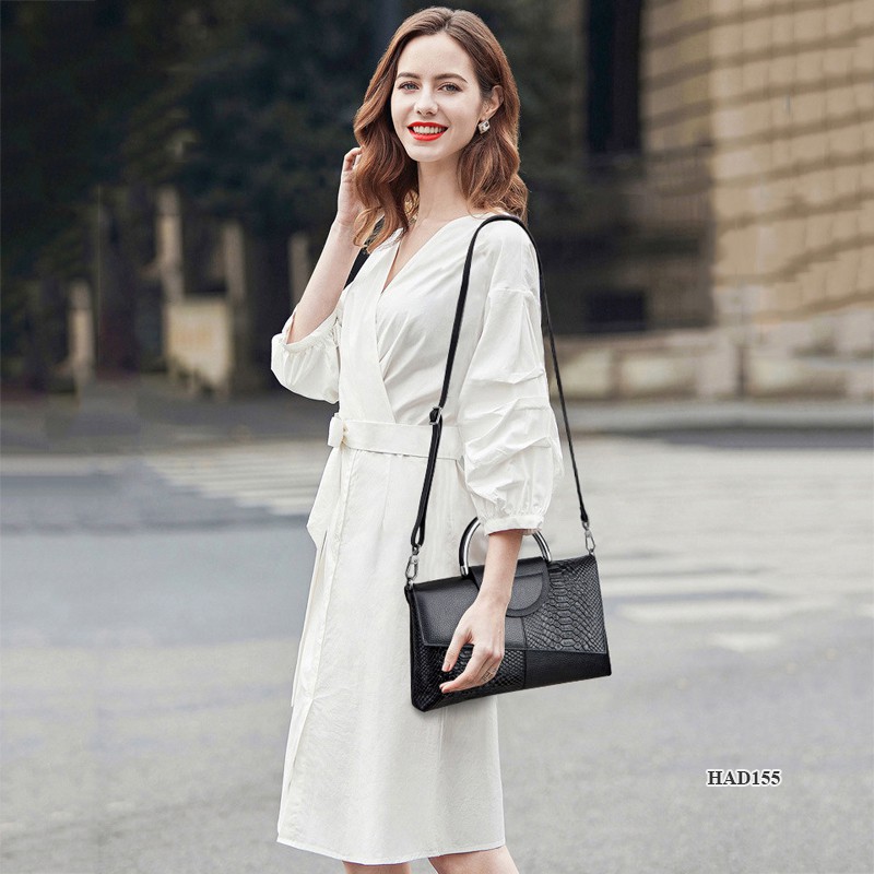 Rất sang và độc đáo! Clutch nữ kiêm túi đeo chéo Hàn Quốc HAD155 ---- ☑️ Thiết kế cực sang chảnh và lạ mắt với quai xách làm bằng kim loại. ☑️ Chất liệu da bò cao cấp mềm mại, dập vân cá sấu tinh xảo, rất bền. ☑️ Dây đeo chéo tiện lợi, phù hợp mọi hoàn cảnh. Cầm tay d