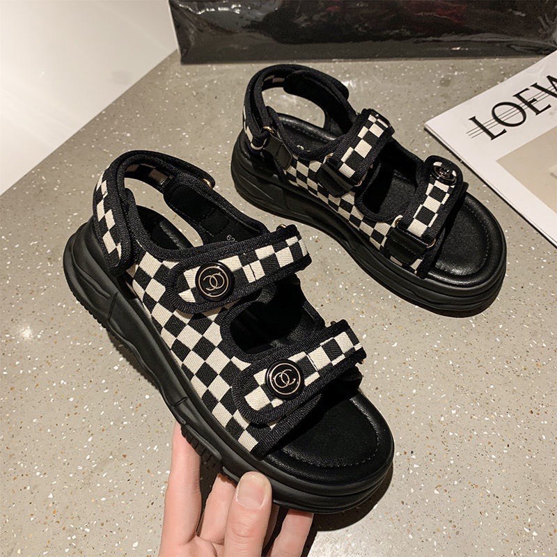 Sandal quai ngang kẻ ô caro đế bằng cực êm - 3P