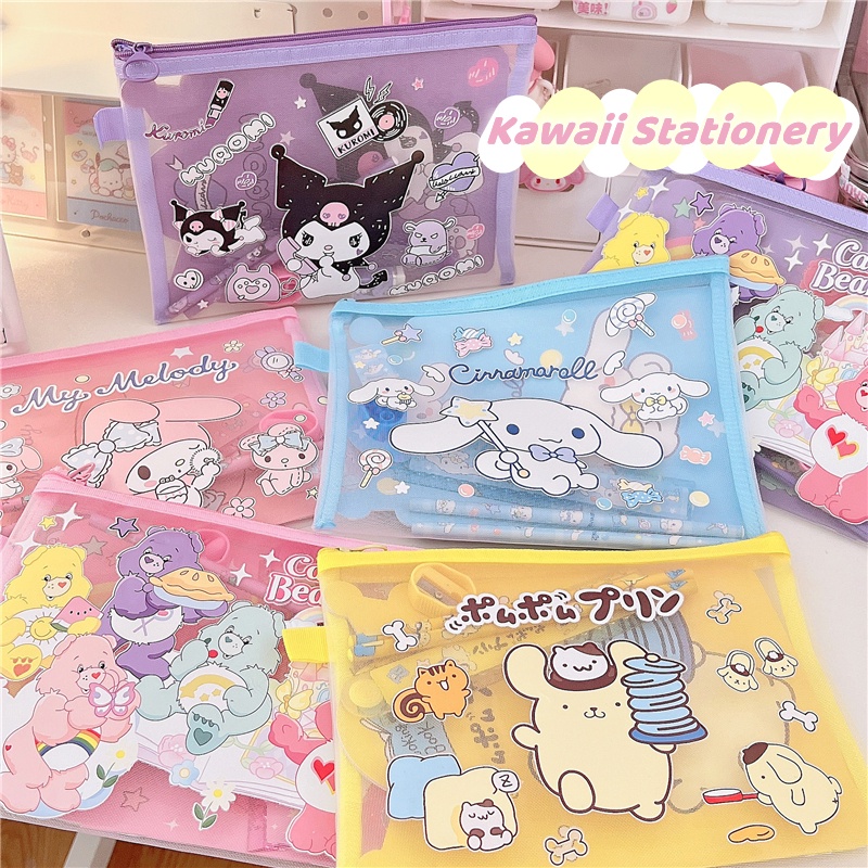 SANRIO Bộ 7 Dụng Cụ Học Tập Gồm Thước Kẻ Với Túi Đựng Họa Tiết Hoạt Hình Kuromi Melody Dễ Thương