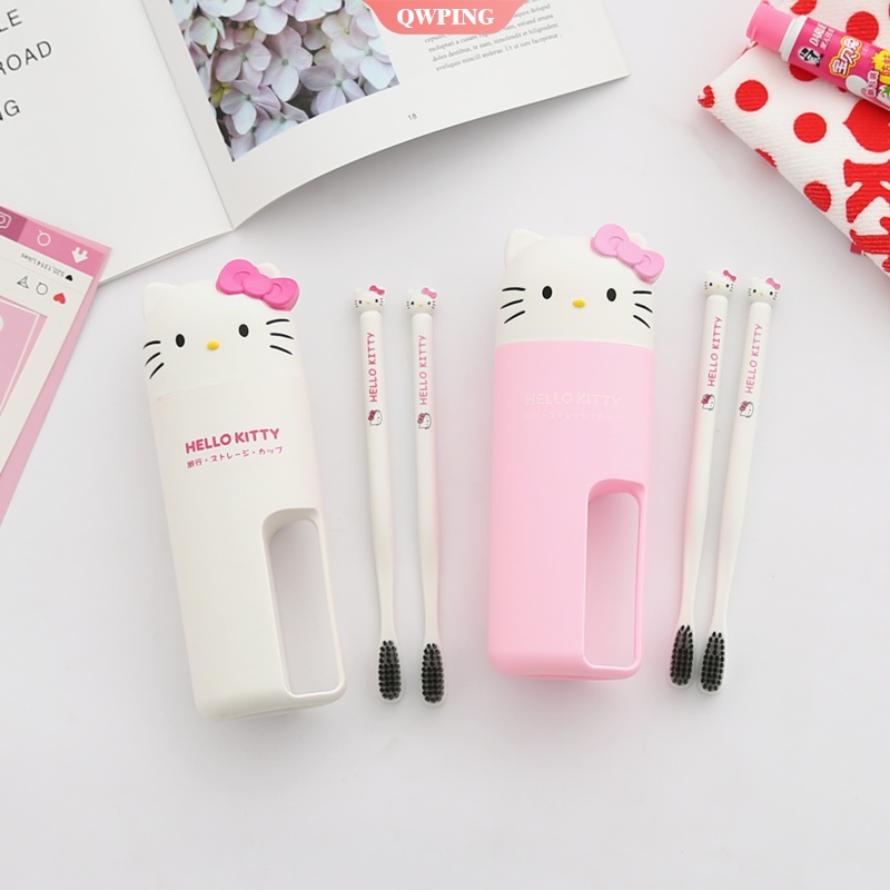 SANRIO Bộ Cốc Đánh Răng Hello Kitty 1 * + 2 Bàn Chải Đánh Răng Tiện Dụng Cho Cặp Đôi