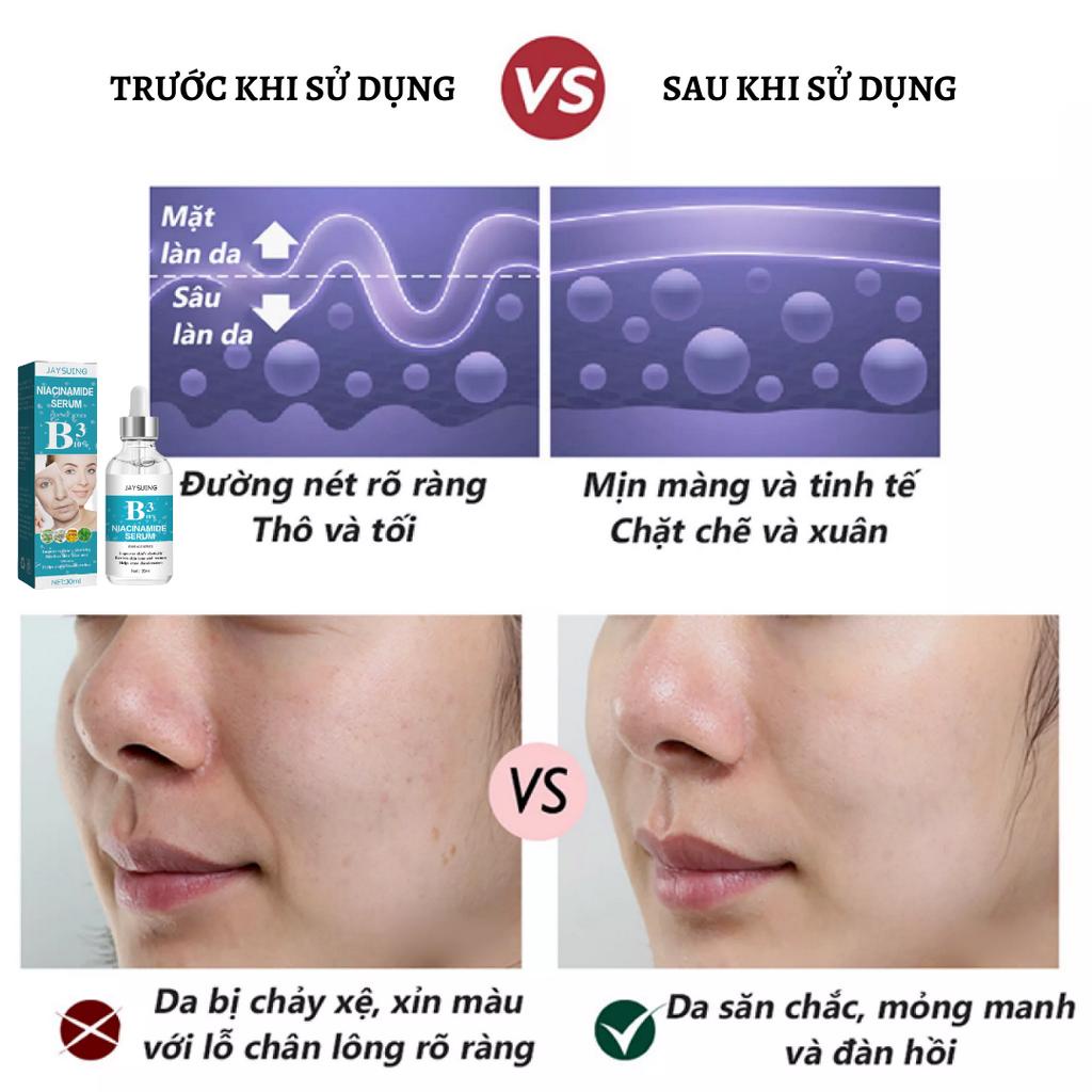 Niacinamide Serum 30ml Là Huyết Thanh Công Thức Đặc Biệt Để Xóa Nếp Nhăn, Chống Lão Hóa Chỉ Mất 90 Giây; Thành phần bao gồm sự kết hợp của 2 Peptide, 17 axit amin và Collagen bằng cách sử dụng công nghệ tiên tiến Instensyl® Nâng cơ nhanh 3d hỗ trợ thêm gấp 3 lần Collagen từ bên trong da, tạo hiệu quả nâng cơ và trẻ hóa tức thì, giảm nếp nhăn hiệu quả trong vòng 28 ngày cho làn da trẻ trung, mịn màng, đàn hồi và tràn đầy năng lượng. Sản phẩm tinh chất thẩm thấu sâu bên dưới lớp bề mặt của da và có thể được sử dụng để loại bỏ nếp nhăn ở mắt, góc miệng, trán, v.v. Không chứa Parabens, Chất bảo quản hoặc Silicones khắc nghiệt, Có thể Sử dụng Trên Da nhạy cảm. Sử dụng Sử dụng: ✅ Làm đầy nếp nhăn trong những năm 90 và duy trì khối lượng da trong 6 giờ ✅ Cải thiện các dấu hiệu lão hóa trong 1 tháng (nếp nhăn, bọng mắt, chảy xệ) ✅ An toàn hơn và tiết kiệm hơn can thiệp làm đẹp Hướng dẫn sử dụng: - Làm sạch da, sử dụng nước cân bằng trước khi sử dụng tinh chất - Thoa một lượng nhỏ huyết thanh (khoảng một cỡ gạo) lên vùng da bị nhăn và Massage nhẹ nhàng cho đến khi Serum được da hấp thụ hoàn toàn. - Không nói hoặc di chuyển cơ mặt ít nhất 2 phút sau khi thoa Serum - Bạn có thể sử dụng quạt để làm khô tinh chất trên da nhanh hơn - Sử dụng 2 lần vào buổi sáng và buổi tối để có hiệu quả nếp nhăn tốt nhất Hsd: 3 năm