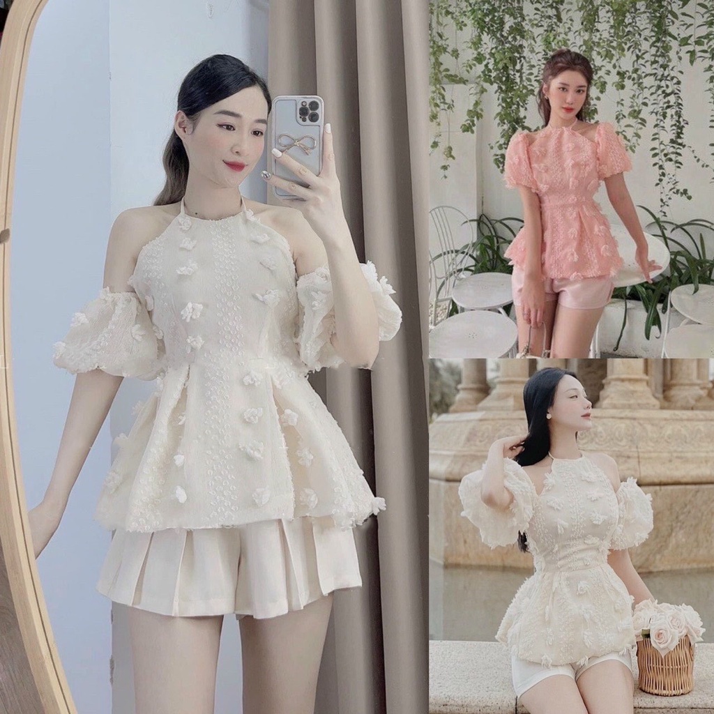 Set áo trắng cổ sen ren tròn kèm quần short ren có lớp lót trong mát chất vải cao cấp loại 1