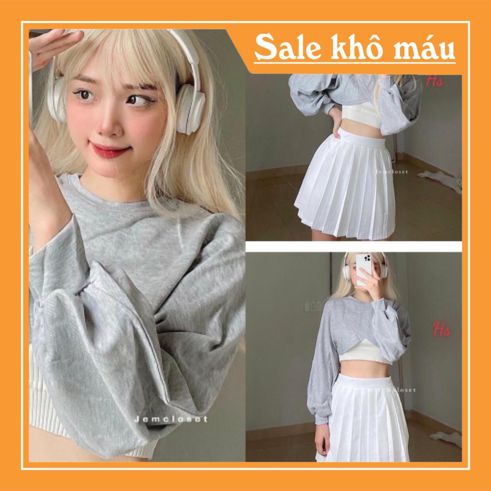 Set 3 món áo khoác tay dài + áo croptop cúp ngực sẵn mút phối xích + quần bí giả váy chất xốp đẹp