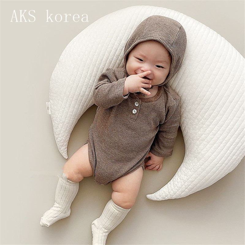 Set áo liền quần tay dài họa tiết hoa cúc + mũ cho bé gái 0-2 tuổi