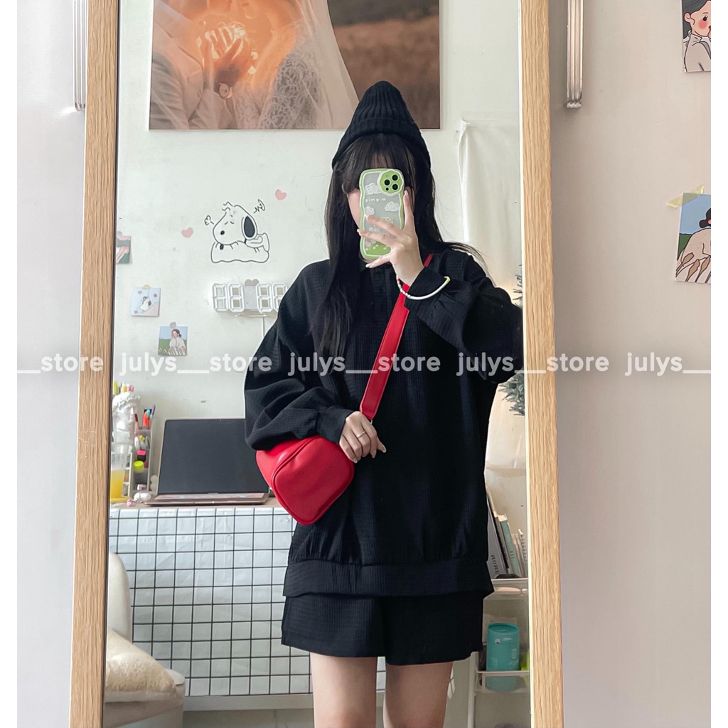 Thông tin chi tiết set áo polo quần đùi thun tổ ong thể thao Tên sản phẩm : SET áo polo quần đùi tổ ong gạo thể thao Tên địa chỉ của tổ chức chịu trách nhiệm về sản phẩm : Julys__store Địa chỉ của tổ chức chịu trách nhiệm về sản phẩm : 50 ngõ 28 Xuân La Tây Hồ - Hà Nội Xuất xứ : Việt Nam **** Lưu ý : Kích thước dưới đây là số đo BỀ NGANG của sản phẩm, mn không nhân đôi mà lấy số đo dưới đây ướm cùng quần áo đang mặc tại nhà nha : Chiều dài áo 69cm Ngang áo 62cm Dài tay 48cm Rộng bắp tay 21cm Rộng ống tay 10cm Dài quần 36cm Rộng cạp chun 25-50cm • Chất liệu : set chất vải thun tổ ong 1 lớp, mềm mịn, độ dày tiêu chuẩn, không co bai hay bông xù • Đặc điểm riêng : SET form rộng OVERSIZE tối đa 70kg mặc thoải mái rộng rãi. Áo bo gấu nhẹ, dáng tay dài trùm, quần đùi ống rộng style ulzzang. Mặc theo set hay tách rời đều xinhh. 4 màu : đen/be/xanh mint/trắng. Mẫu nhà Julys cao 1m57 46kg mặc trùm mông và rộng như hình chụp. • Cam đoan từ Julys__store : Tất cả hình ảnh, video Julys sử dụng đều là ảnh thật shop tự chụp, có kèm video cận chất và chèn logo tên shop. Julys rất coi trọng bản quyền hình ảnh nên mong các shop vui lòng không sử dụng hình ảnh bên mình ạ. Màu sắc thực tế của sản phẩm sẽ chênh lệch ít nhiều do điều kiện ánh sáng và góc chụp khác nhau, nhưng không đáng kể. Mong khách hiểu & thông cảm ạaa. • Các cậu vui lòng inbox cho JULYS các thông tin về (chiều cao + cân nặng + số đo 3 vòng) để JULYS tư vấn chính xác trước khi đặt hàng, tránh trường hợp đổi trả nha QUY ĐỊNH ĐỔI TRẢ SẢN PHẨM CỦA JULYS STORE • Điều kiện áp dụng : - Được đổi trả trong vòng 3 ngày kể từ ngày nhận hàng - Hàng hoá vẫn còn mới, giữ nguyên tem mác, chưa qua sử dụng - Shop chỉ nhận đổi sản phẩm bị lỗi do nhà sản xuất (shop hỗ trợ toàn bộ phí ship) và hỗ trợ đổi size (áp dụng cho sản phẩm có size, khách thanh toán phí ship đổi hàng) • Trường hợp được đổi trả : - Sản phẩm bị lỗi do nhà sản xuất - Hàng không đúng mẫu mã khách đặt, hình dáng không như shop chụp - Không đủ số lượng như trong đơn hàng - Để đảm bảo được hỗ trợ tốt nhất, quý khách vui lòng quay lại video quá trình bóc hàng giúp shop nha • Trường hợp không đủ điều kiện áp dụng chính sách đổi/trả : - Shop không nhận đổi màu, đổi mẫu, không chấp nhận lí do : “không hợp”, “không thích”, “đặt nhầm”,… • Gửi lại sản phẩm không đúng mẫu mã, không phải hàng của shop
