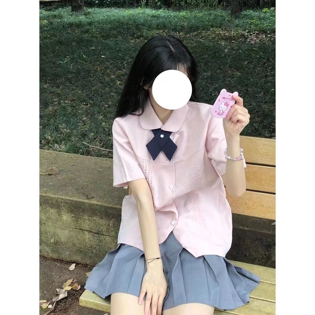 Set Áo Sơ Mi Hồng + Chân Váy Xếp Ly Phong Cách Hàn Quốc Cho Nữ