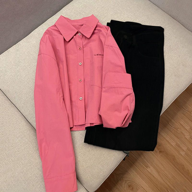 Set Áo Sơ Mi Thêu Họa Tiết 2022 Phối Quần Dài Ống Rộng Thời Trang Mùa Thu Cho Nữ
