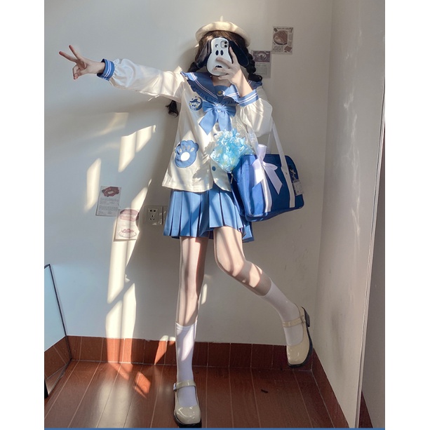 Set áo váy đồng phục Học sinh Nhật Bản - Seifuku Brand Bắc Thần - Sei Gấu trúc - Màu Xanh #bacthan #sei