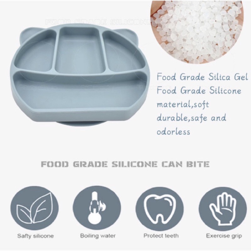 Set ăn dặm silicon cho bé: yếm gấu brown, bát chống lật, khay 4 ngăn, cốc tập hút gấu