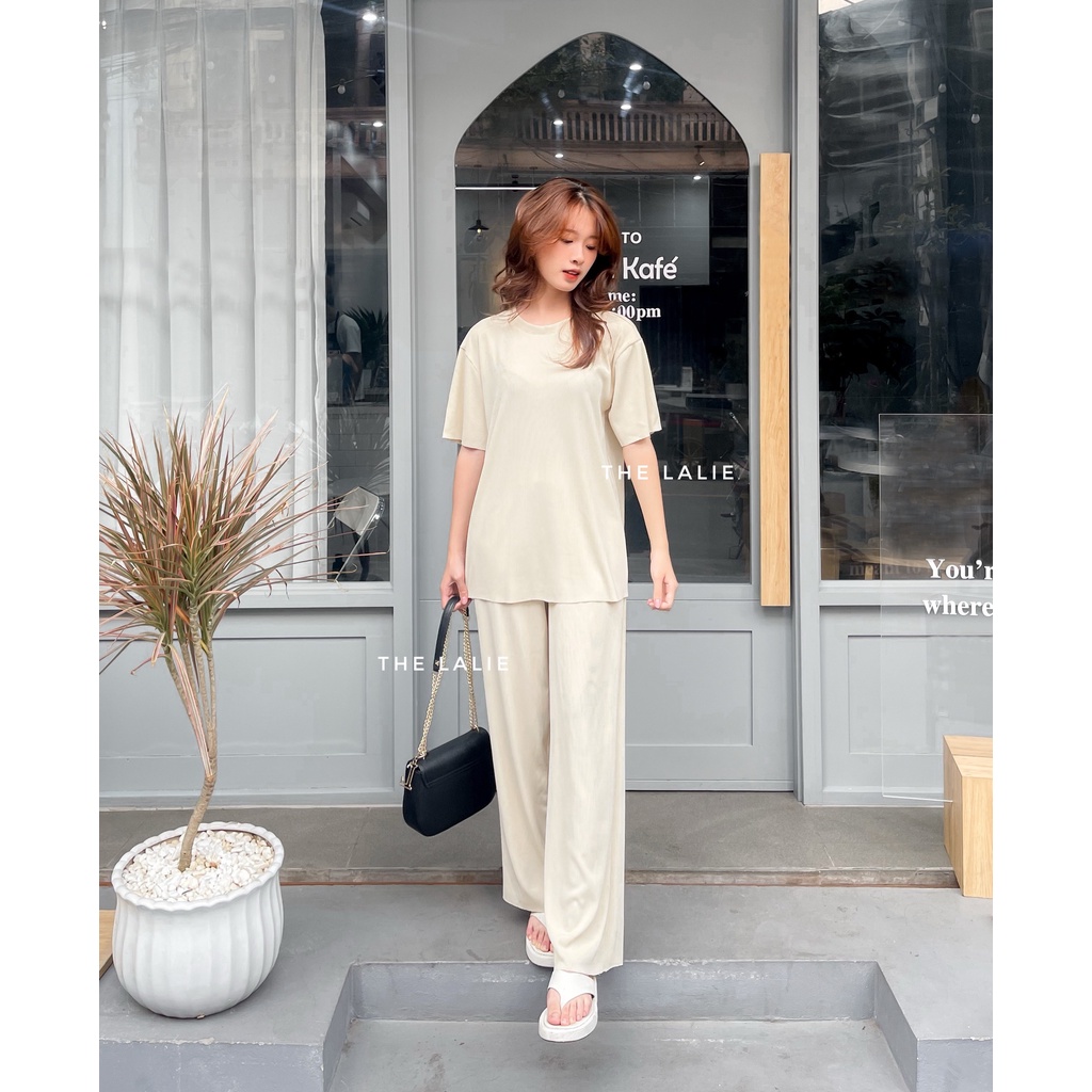 Set Bộ Thun Tăm Quần Ống Suông, Set đồ nữ áo croptop phối quần ống suông Hadu House