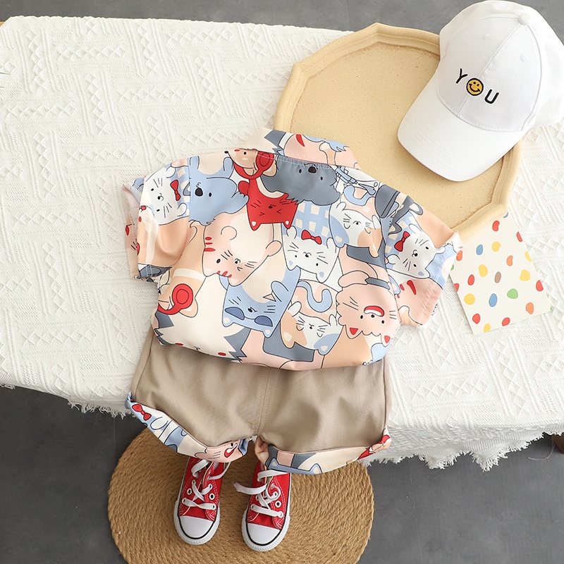 Set Đồ Mùa Hè 2 Món Gồm Áo Sơ Mi In Họa Tiết + Quần Ngắn Thời Trang Cho Bé Trai