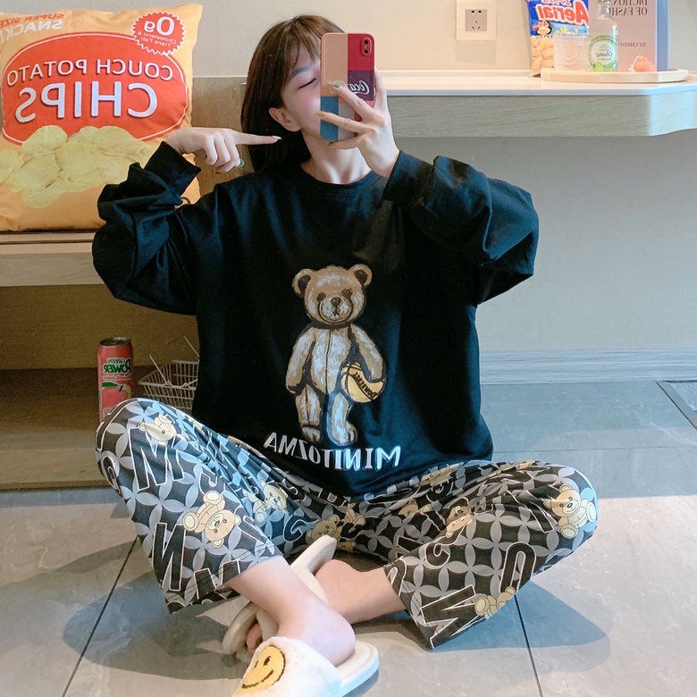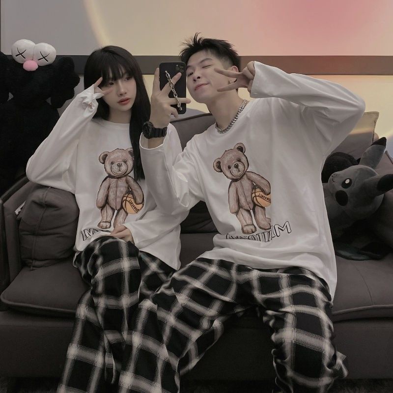 Set đồ ngủ tay dài dáng rộng phong cách Hàn Quốc dễ thương thời trang mùa thu cho nam nữ