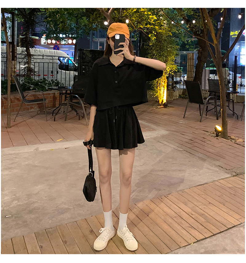 Set đồ SUXI gồm áo ngắn tay và quần short giả váy thời trang mùa hè cho nữ