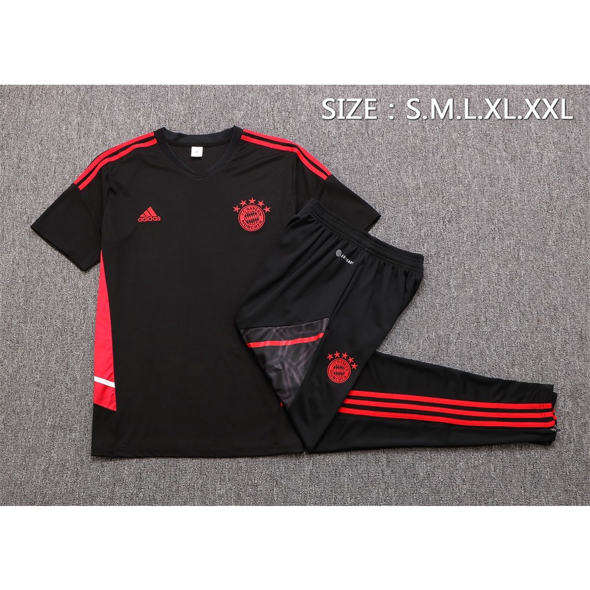 Set Đồ Thể Thao Gồm Áo Thun Tay Ngắn Cổ Chữ V Và Quần Dài Màu Đen Size S-2XL Thời Trang Mùa Hè 2022-23 Bayern Munich Cho Nam