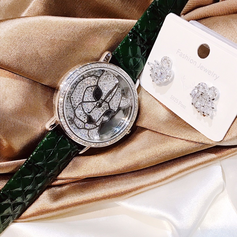 Davena thật tinh tế khi tung ra toàn mẫu đẹp độc đáo ☘️ Mặt dial full hàng ngàn tinh thể pha lê xanh phối gương siêu đẹp. Khắc họa hình báo siêu chất, dây da xanh bóng dập vân cá sấu cực chảnh kết hợp mặt Rose nổi bật sang trọng. ⚜mặt đồng hồ Size Case 36mm ⚜Máy nhật