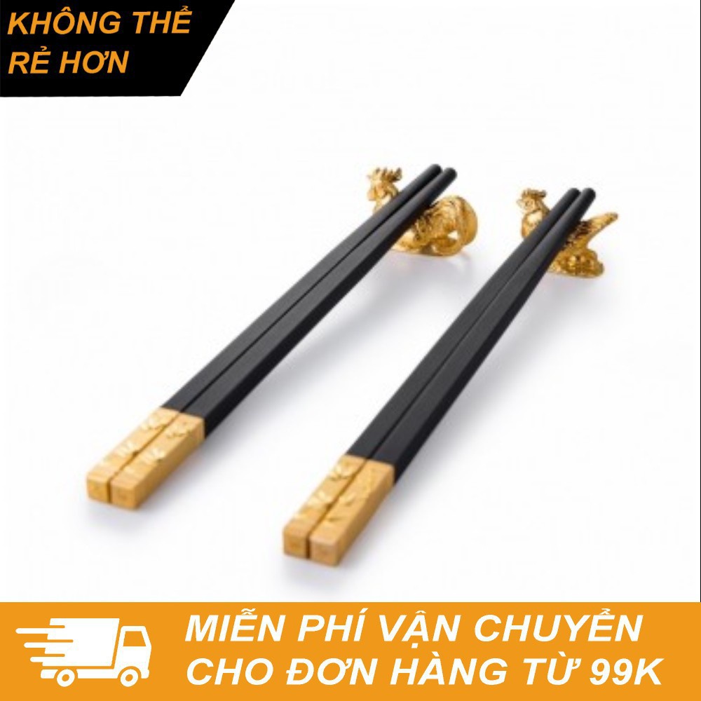 Set 10 Đôi Đũa Mạ Vàng Hợp Kim Cao Cấp Ăn Cơm Gia Đình Sạch Sẽ Lịch Sự