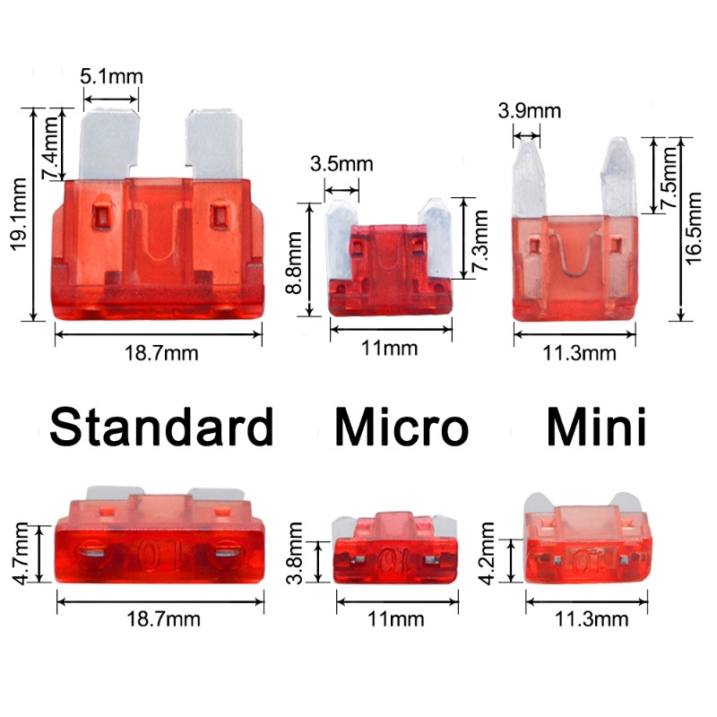 Set 10 Cầu Chì Tự Động mini 3A 5A 7.5A 10A 15A 20A 25A 30A 35A 40A