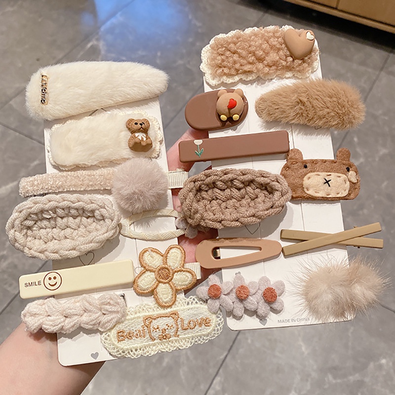 Set 10 kẹp tóc bằng vải lông mềm họa tiết hoạt hình phong cách dễ thương thời trang Hàn Quốc cho nữ