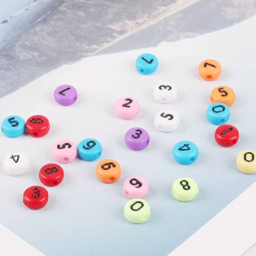 Set 100 Hạt Xâu Chuỗi Khắc Chữ Tiếng Anh / Trái Tim / Số Làm Trang Sức Thủ Công