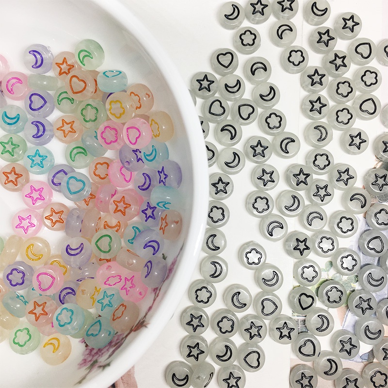 Set 100 Hạt Xỏ Lỗ Trái Tim / Số / Chữ Cái Dạ Quang Kích Thước 4 * 7mm
