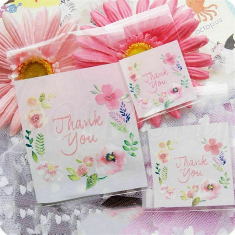 Set 100 Túi Đựng Bánh Kẹo In Chữ Thank You Và Họa Tiết Hoa Có Thể Tự Dính Tiện Dụng