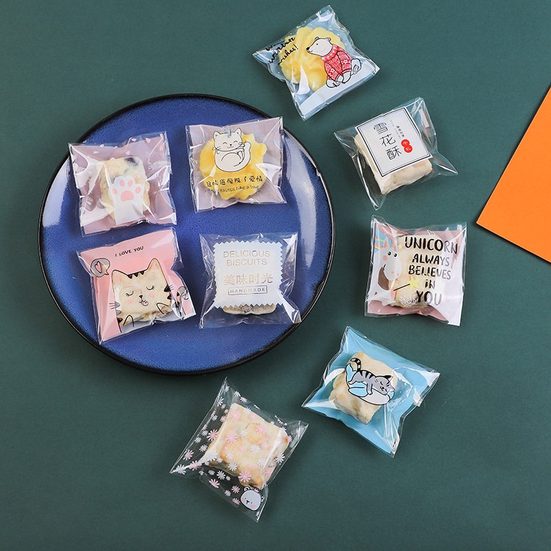 Set 100 túi đựng bánh kẹo trong suốt tự dính tiện dụng