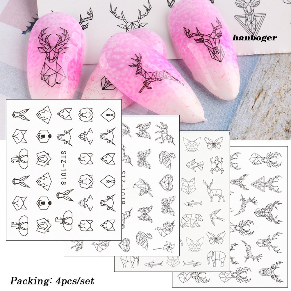 Set 16 Miếng Nhãn Dán Trang Trí Móng Nghệ Thuật Phong Cách Đường Kẻ Độc Đáo