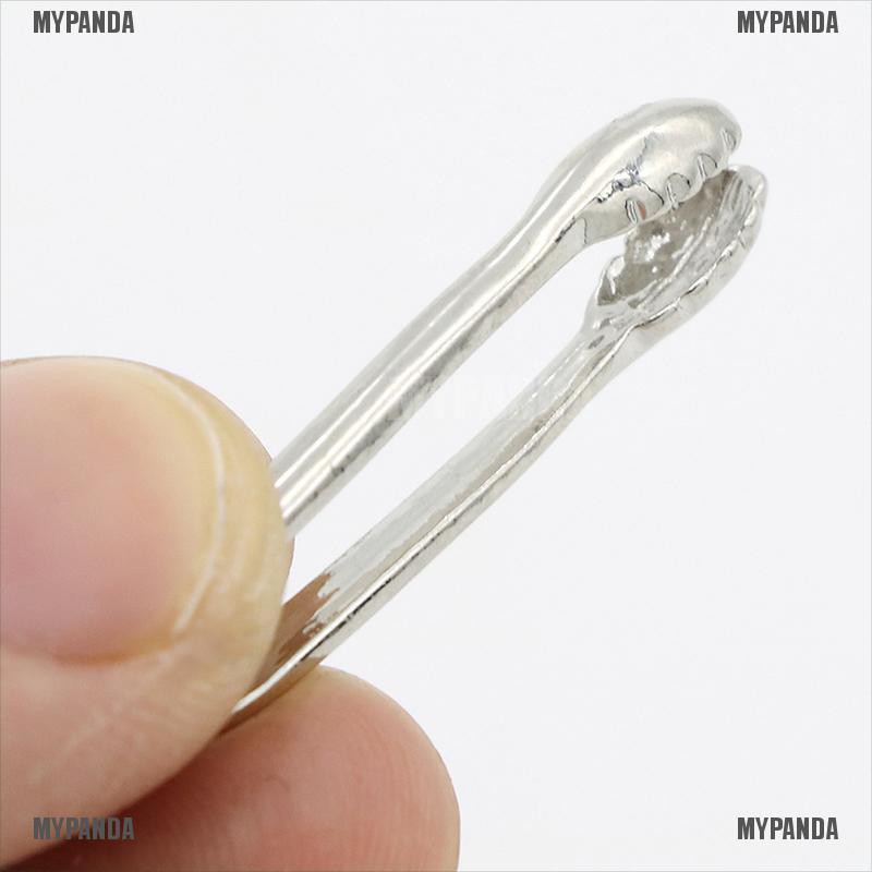 Set 2 kẹp gắp thực phẩm kim loại mini màu bạc cho nhà bếp búp bê 1:12