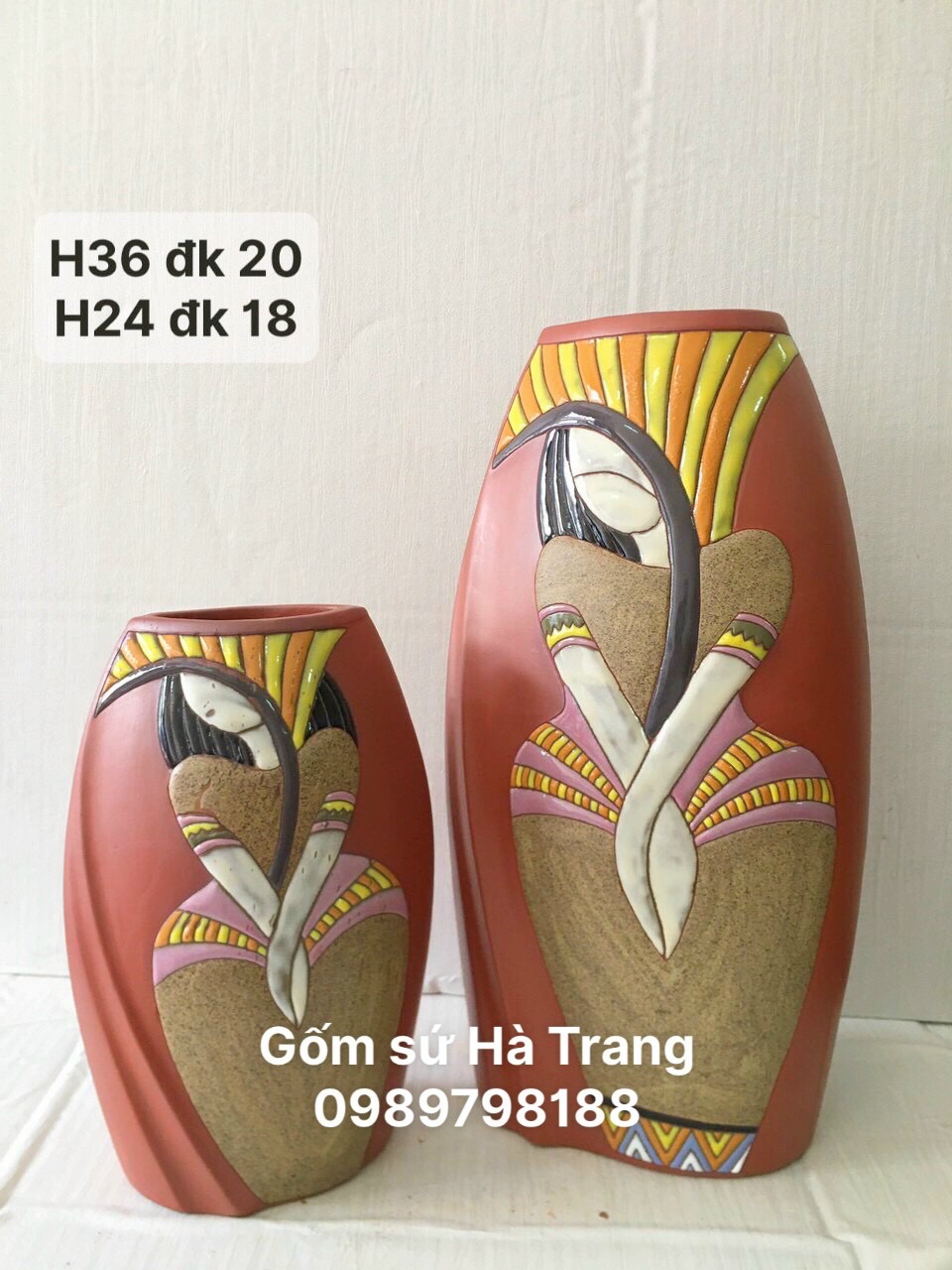 Set lọ dẹt Gốm đất đỏ đẹp độc lạ 1 set gồm 1 lọ cao 36cm 1 lọ cao 24cm ...