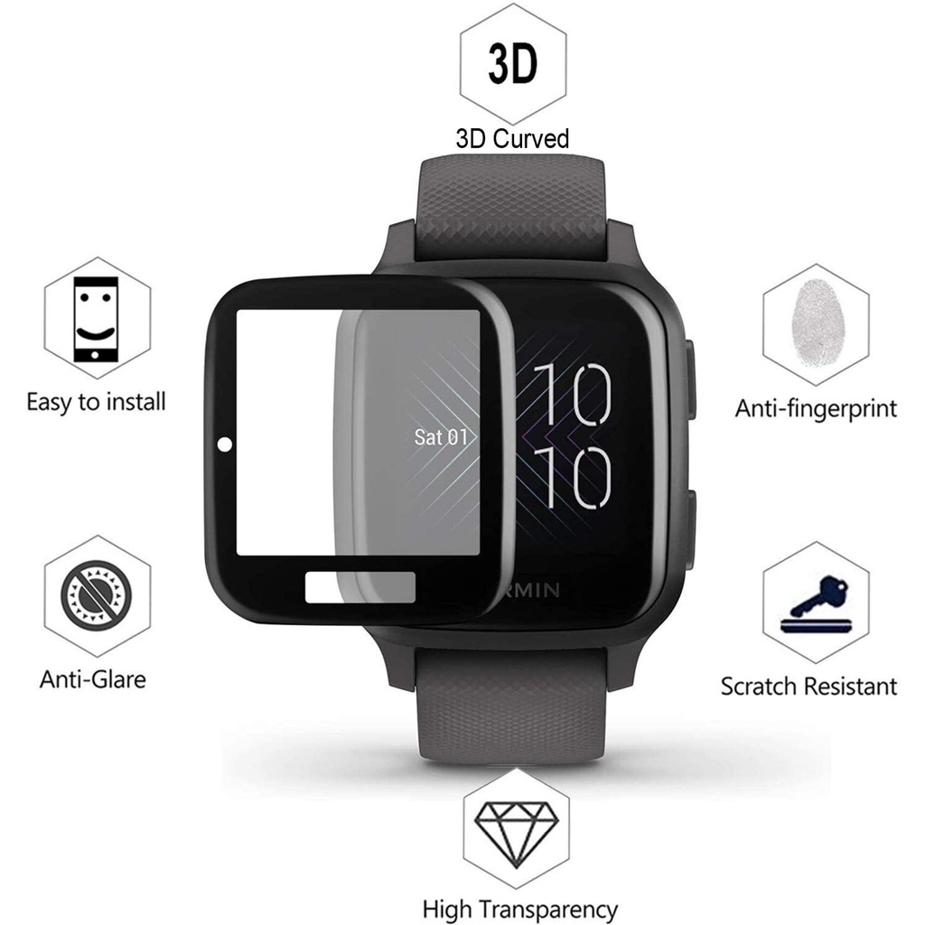 Set 2 miếng dán cường lực bảo vệ màn hình thích hợp cho đồng hồ thông minh Garmin Venu Sq 3D
