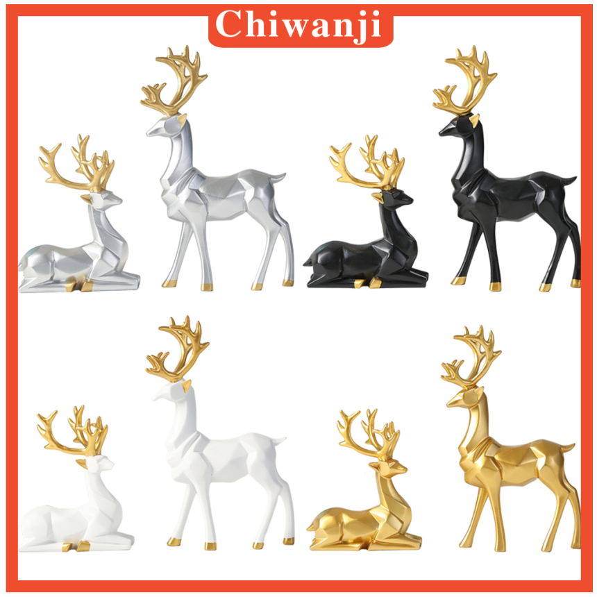 Set 2 Tượng Hươu Đứng/Ngồi Trang Trí Nội Thất Sang Trọng