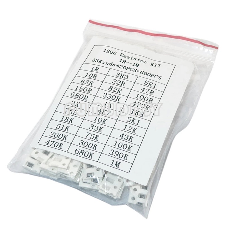 Set 20 Điện Trở 1206 SMD 1ohm-1M Ohm 1% 33ValuesX = 660 Mẫu Chuyên Dụng