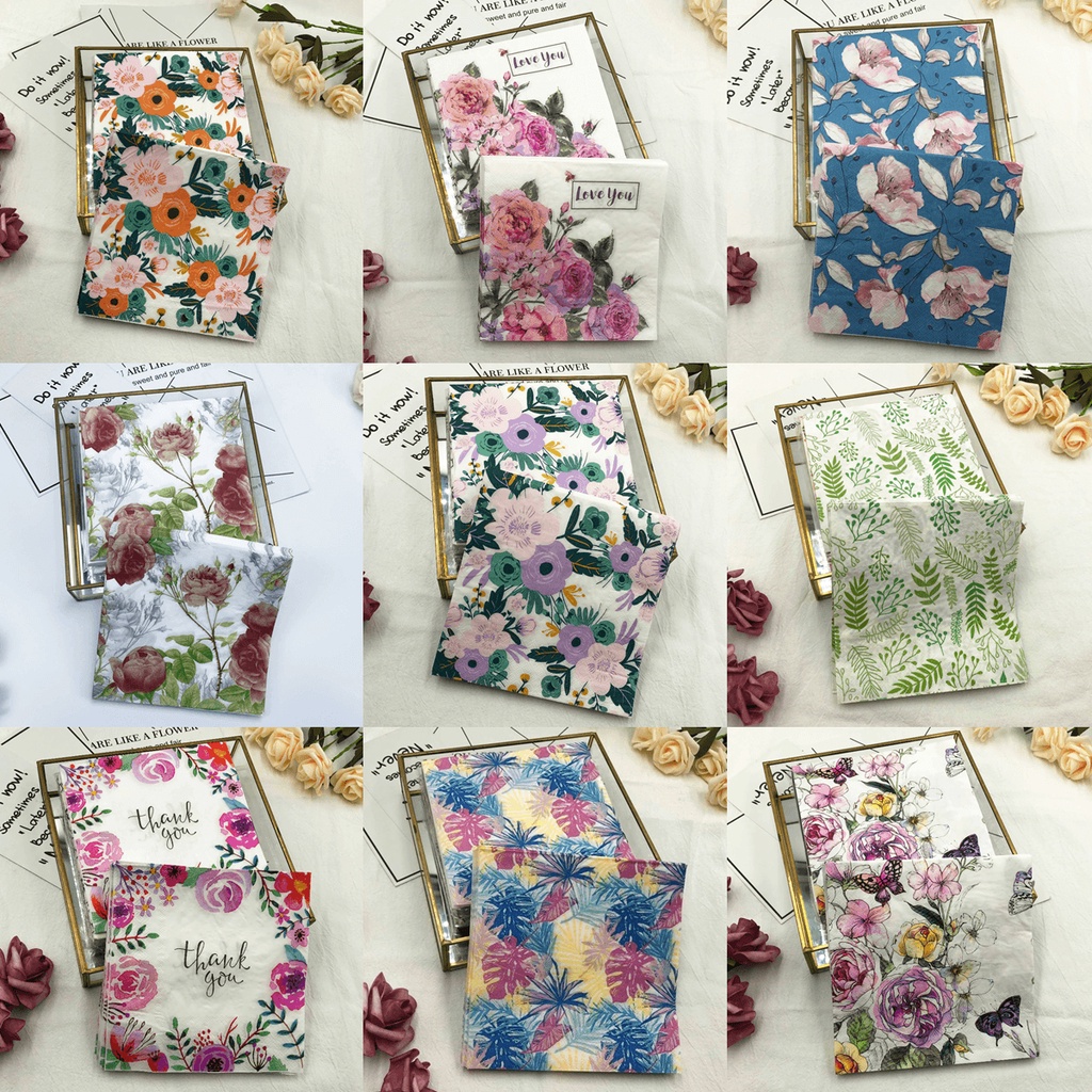 Set 20 Khăn Ăn Vuông Họa Tiết Hoa 3D Nhiều Màu Sắc