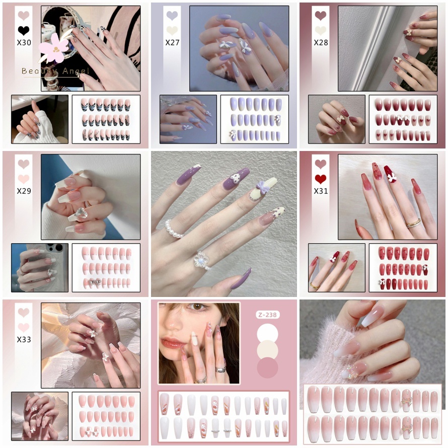Set 24 móng tay giả thiết kế thủ công thời trang, nailbox hottrend LyLy móng giả rẻ đẹp kèm keo gắn