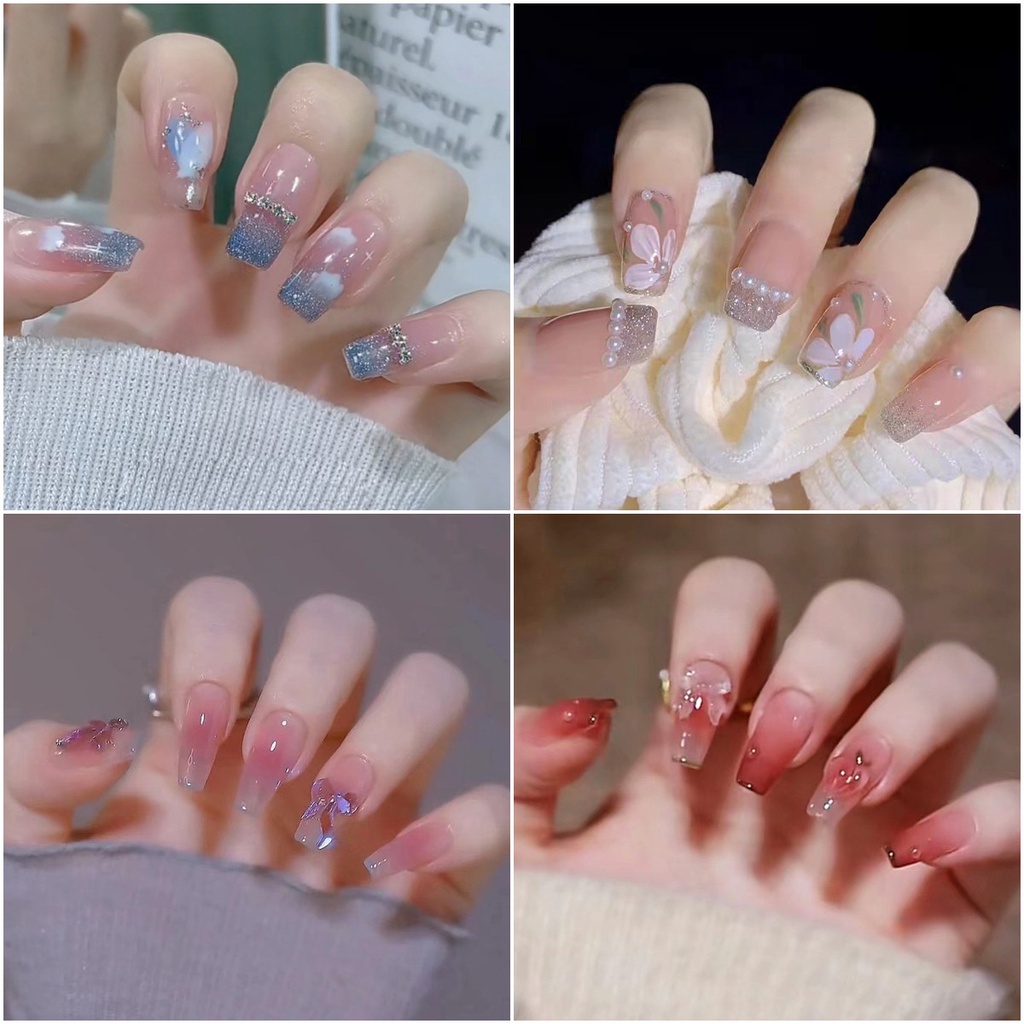 Set 24 móng tay giả,móng tay thiết kế đính đá,nailbox thời trang kèm keo