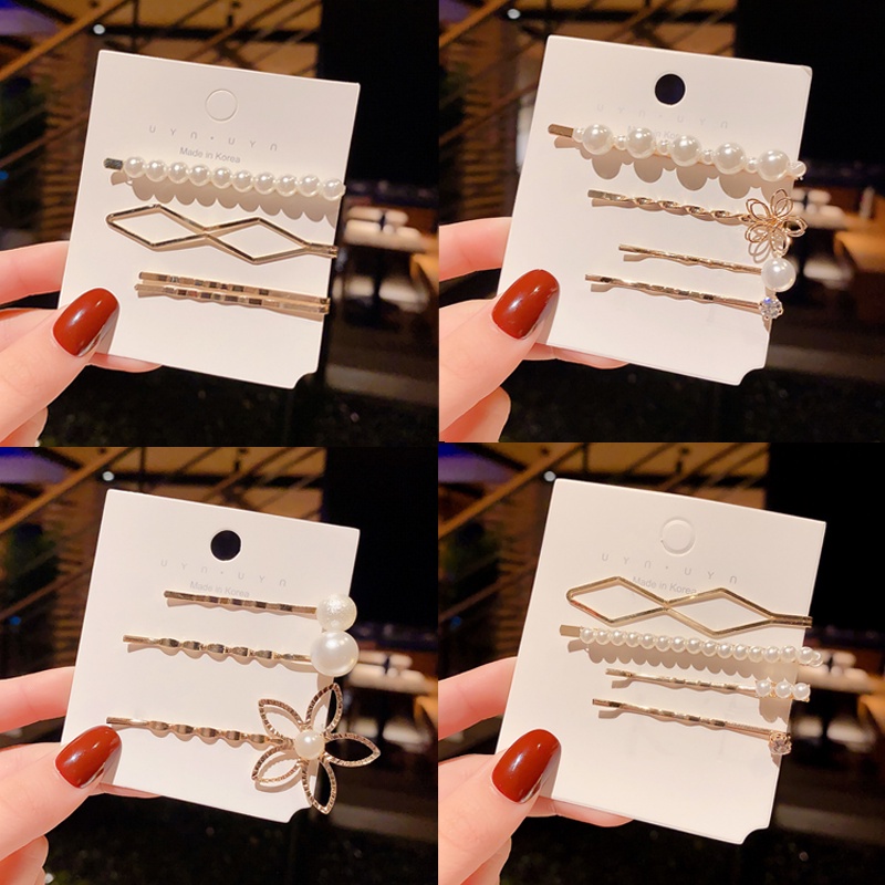 Set 3 Hoặc 4 Kẹp Tóc Đính Ngọc Trai / Kim Cương / Trái Tim / Hình Học Thời Trang Cho Nữ