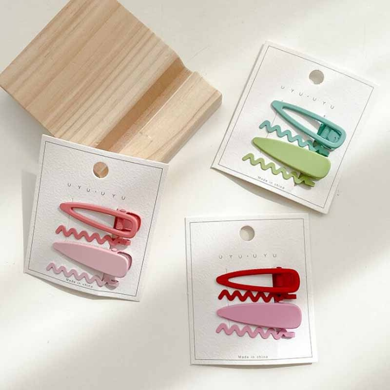 Set 4 kẹp tóc hình giọt nước và gợn sóng màu sắc kẹo ngọt tùy chọn đáng yêu dành cho bé