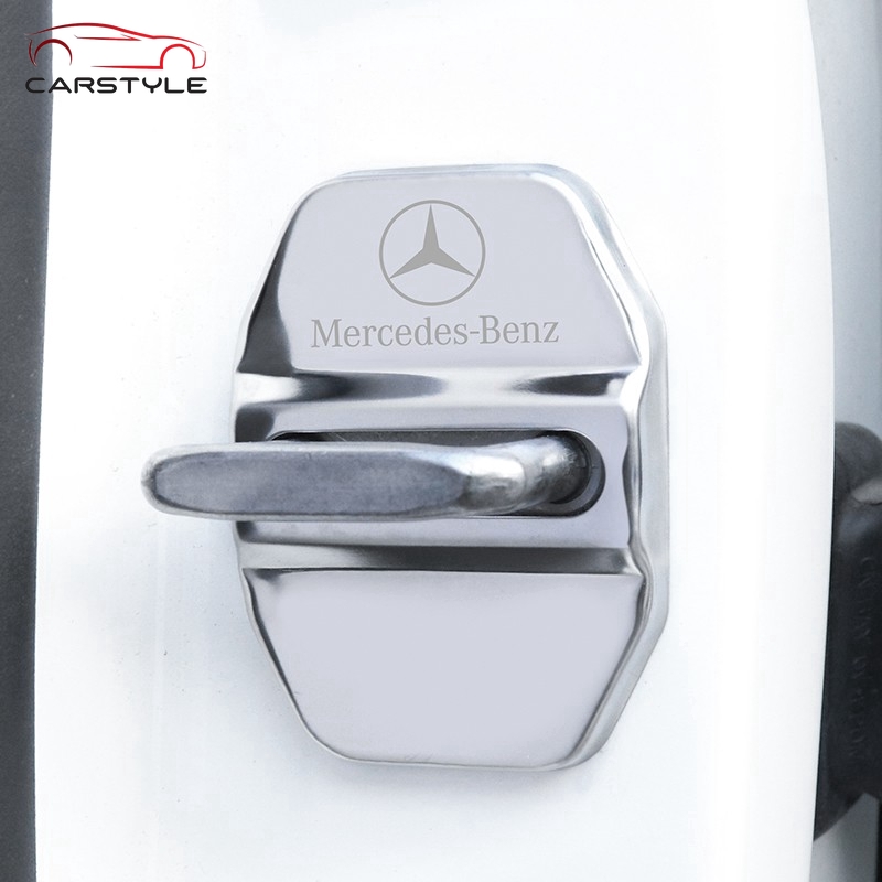Set 4 nắp đậy ổ khóa cửa xe bằng thép không gỉ cho Mercedes-Benz Amg C E CLA GLA GLC GLE GLB A B S 200 260 300 W205
