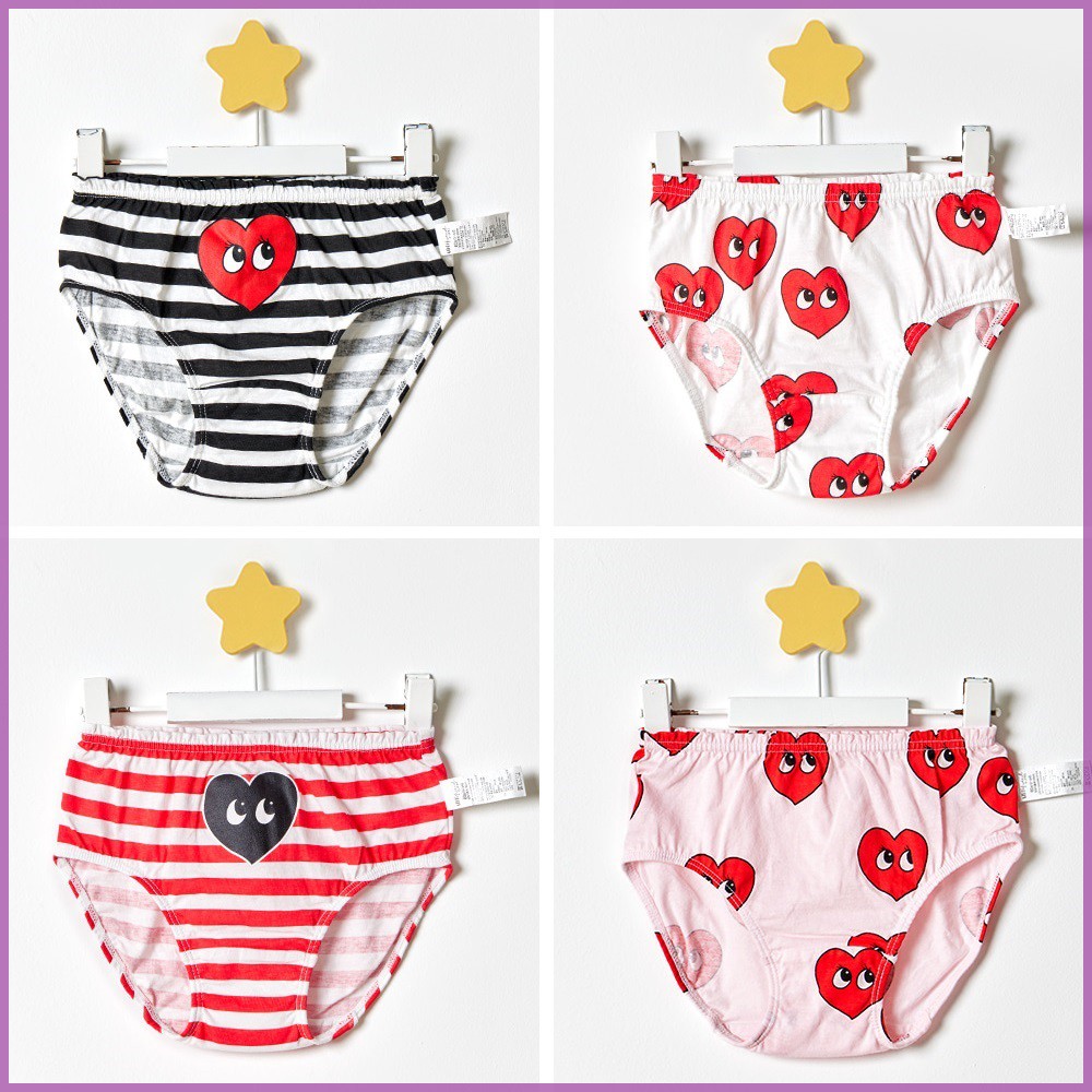Set 4 quần lót cotton họa tiết xinh xắn nhiều màu sắc cho bé gái 2-12 tuổi Chất liệu: 95% Cotton siêu mát + 5% Spandex (chất liệu siêu đàn hồi) giúp co giãn tối đa, thấm hút tốt, mềm mại, tạo cảm giác thoải mái cho các bé – Giặt bằng máy thoải mái Họa tiết: Hình