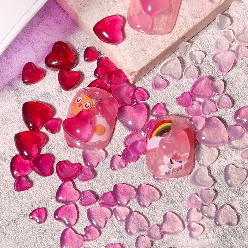 Set 50 Phụ Kiện Trang Trí Móng Tay 3D Hình Trái Tim Thay Đổi Màu Dạ Quang DIY