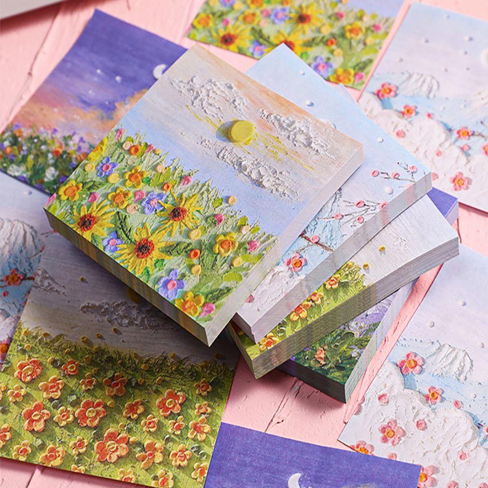 Set 50 Tấm Giấy Ghi Chú Tự Dính Họa Tiết Tranh Sơn Dầu Trang Trí Sổ Tay