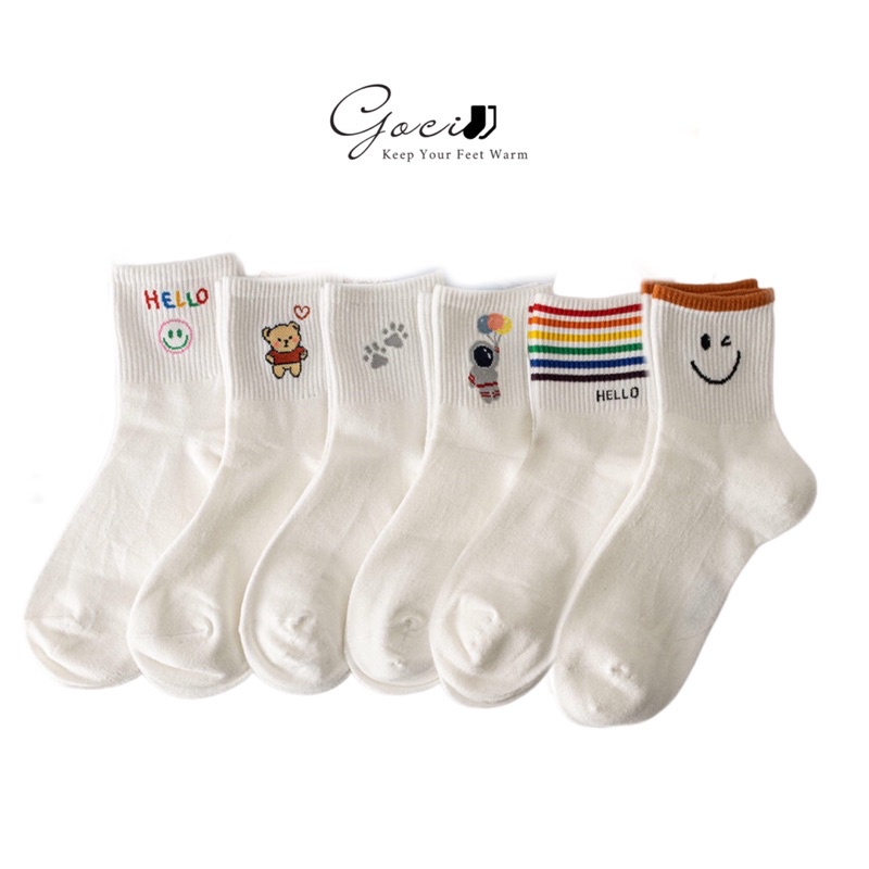 Set 6 đôi tất chân mặt cười nhún cao cổ trơn nâu chất len đẹp nam nữ thể thao unisex Hàn Quốc
