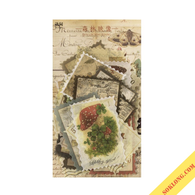 Set 60 tem dán Vintage hình thực vật, động vật - Sticker tem trang trí sổ tay, thiệp