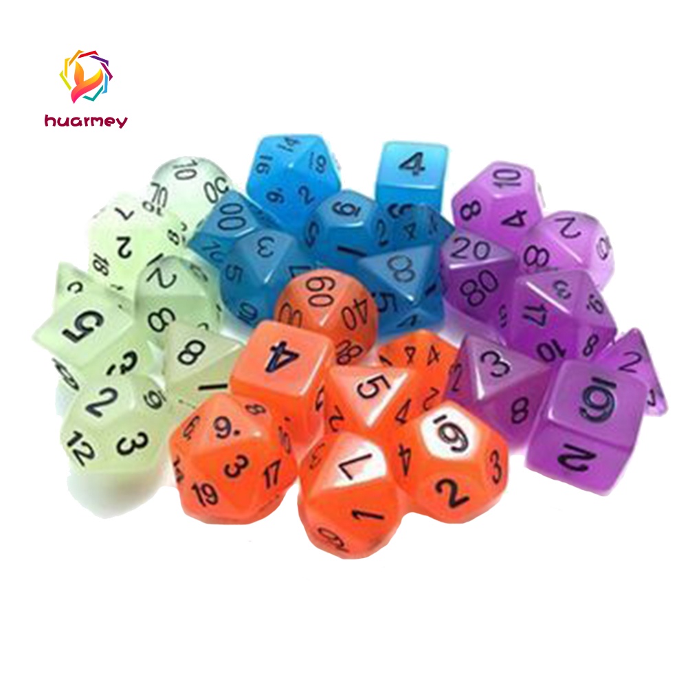 Set 7 xúc xắc nhiều mặt phát sáng được dùng chơi game Dungeons and Dragons
