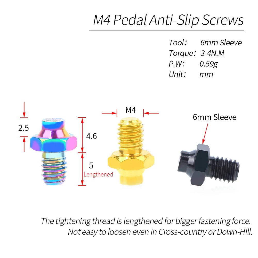 Set 8 Bu Lông Gắn Bàn Đạp Xe Đạp Leo Núi Đầu Lục Giác Bằng Titan Chống Trượt Siêu Nhẹ M4x4.6mm 5.0