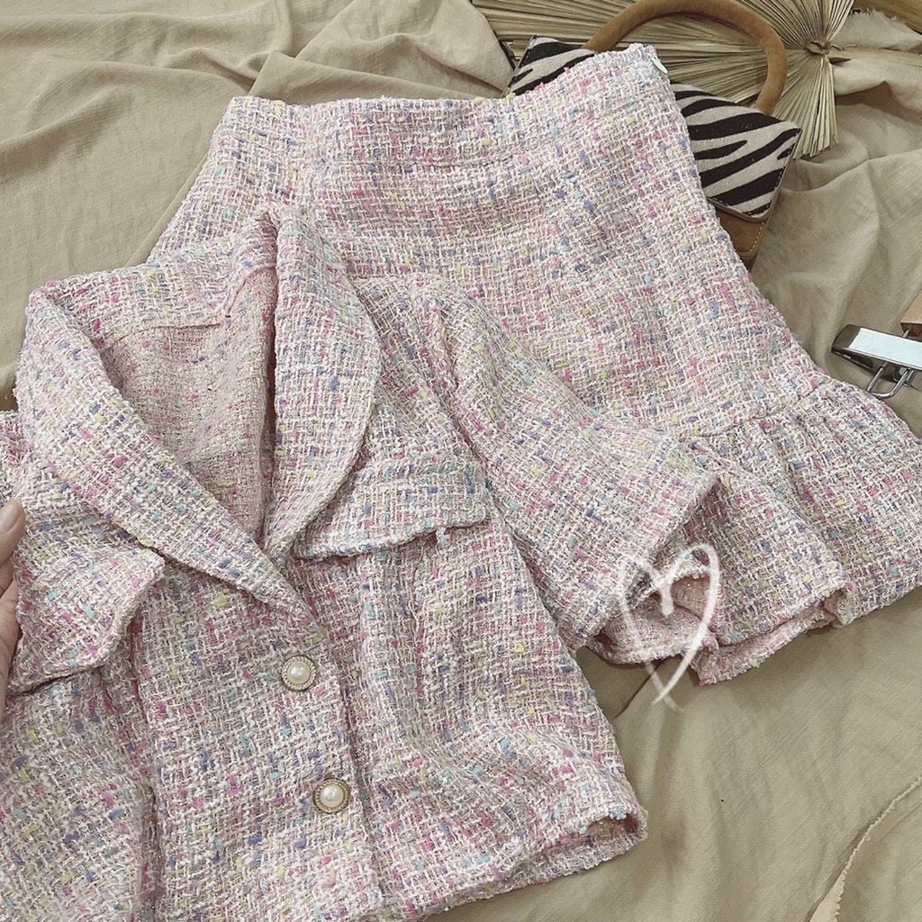 SET BỐ HỒNG CROPTOP CỔ SEN + CHÂN VÁY ĐUÔI CÁ MINI