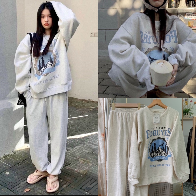 Set Bộ Đồ Nữ Mùa Đông Áo Nỉ In Hình Chó Mix Quần Nỉ Bo Gấu Dáng Dài Hàng Đẹp QC loại 1 M66
